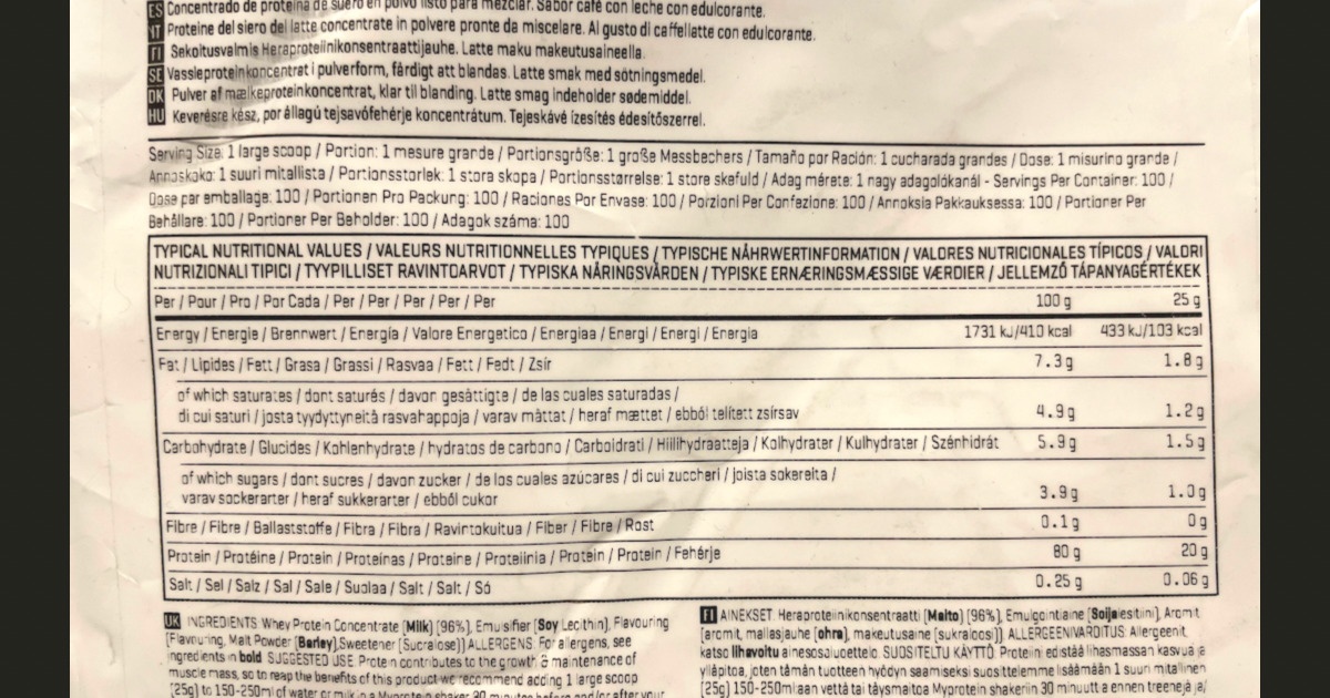 マイプロテイン ラテ味のレビュー(栄養成分)