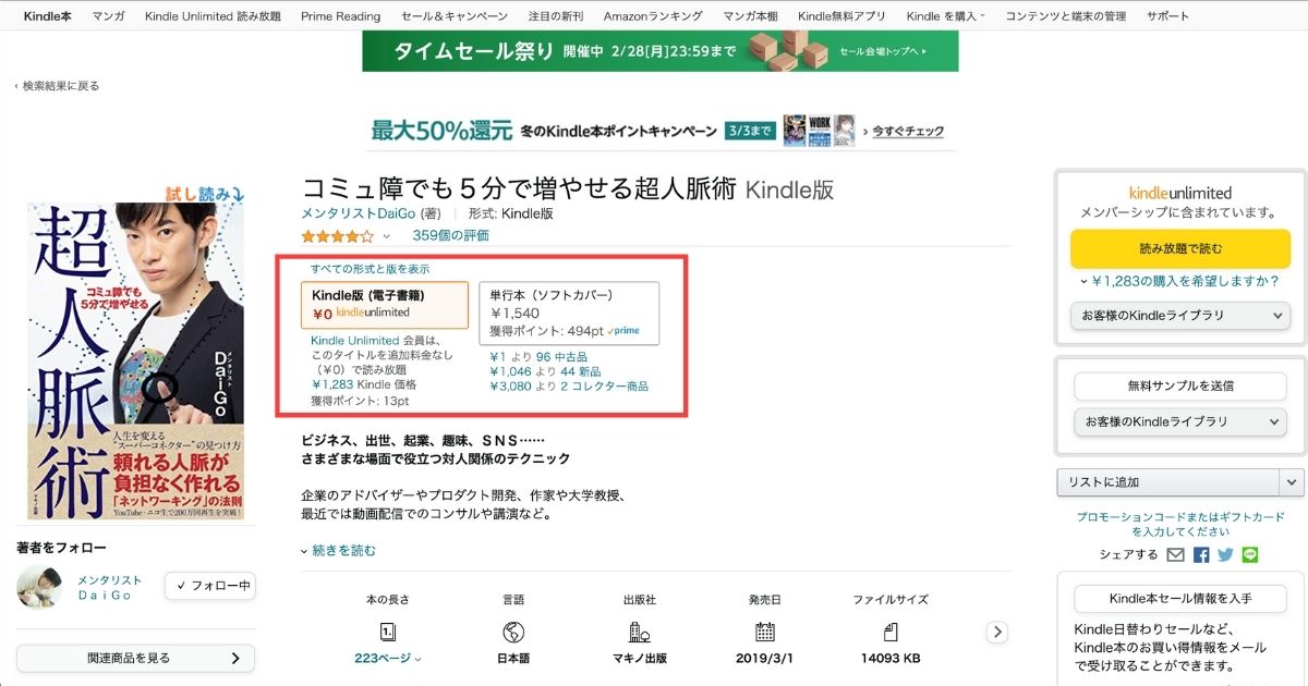 Kindle Unlimitedなら1,000円で読むことができます。